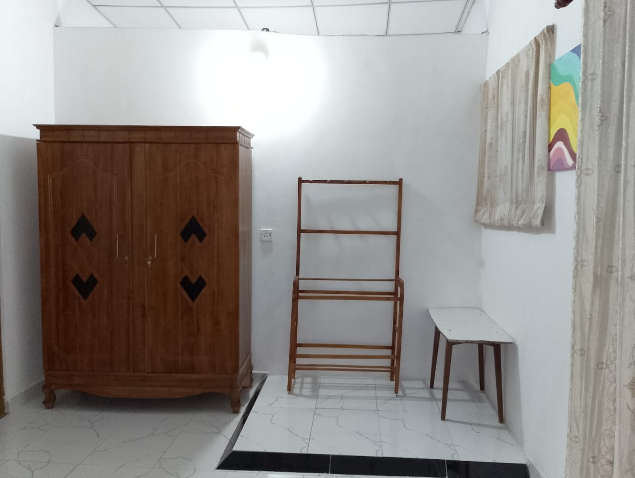 • *නිදහස් පරිසරයක උඩුමහලක ඇනෙක්සිය, හොඳම තත්වයෙ ටයිල්ස් , නවීන පන්නයේ නාන කාමරය. විදුලි පංකා සහිත නිදන කාමරය, Thurible Bed එකක් සහ Dable Bed එකක්, TV එකක්, පුටු සෙට්ව් එකක්, ගෑස් කුකර් එකක්, කෑම මේසයක් සහ පුටු 4ක් , කාමරය සදහා මේසයක්, පුටු 2 සහ අල්මාරියක්, කණ්නාඩ් මේසයක් , Towel Rack 2 ක්, ගෑස්කුකර් එකක් සහ සිලින්ඩරයක්.