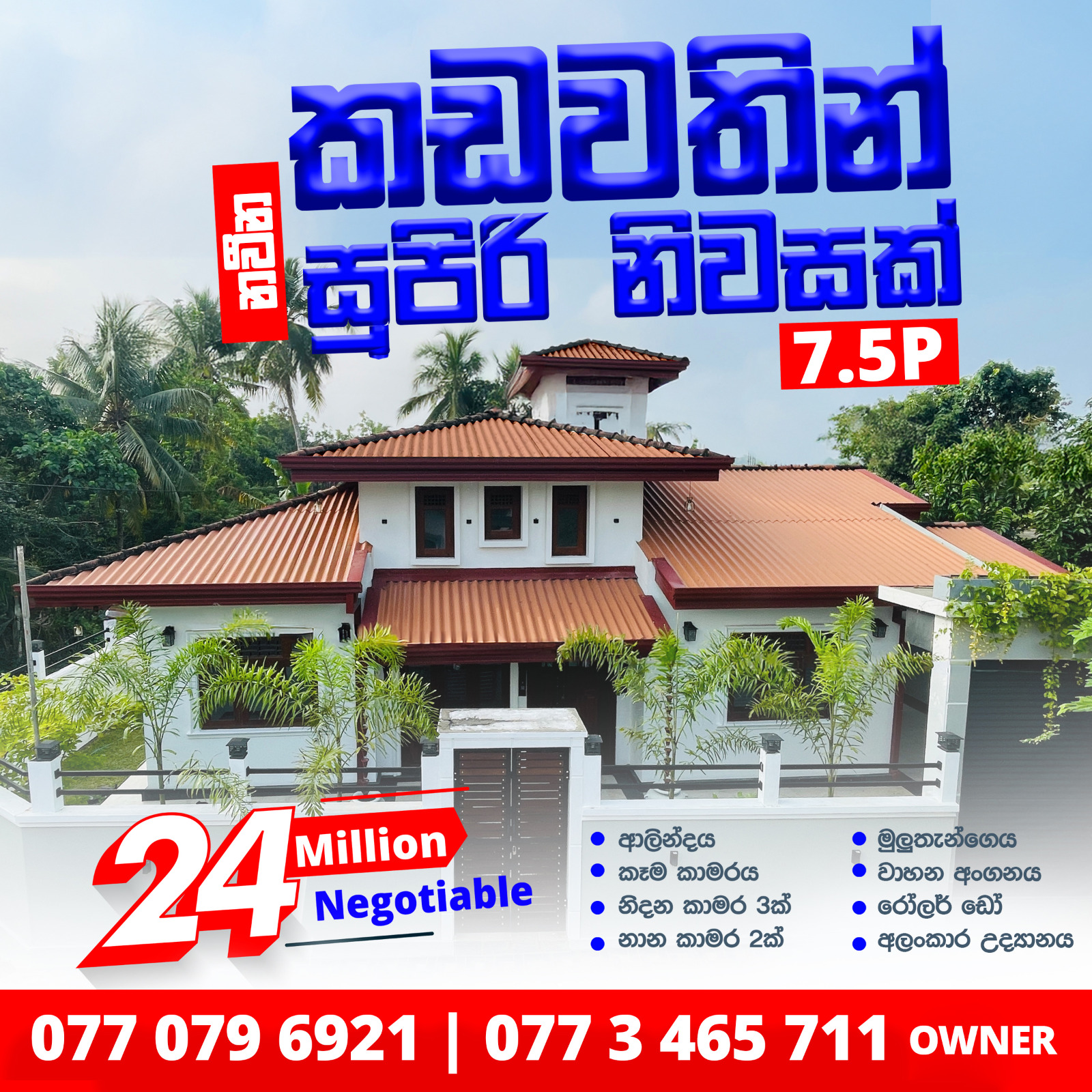 Sanjeewa (House Owner) – 0770796921 / 0773465711