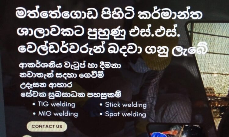 මත්තේගොඩ පිහිටි කර්මාන්ත ශාලාවකට පුහුණු එස්.එස්. වෙල්ඩර්වරුන් /පෑස්සුම්කරුවන් බදවා ගනු ලැබේ