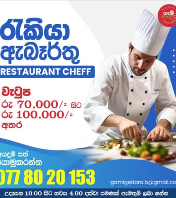 Resident Commi Chef Restaurant located in Battaramulla Salary negotiable Call for more information 0777781297